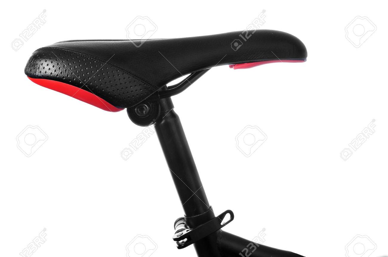 白のシート ポストの自転車のサドルのクローズ アップ の写真素材